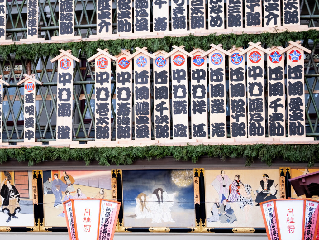 顔見世興行といえば、南座前に掲げられる「まねき」も有名です。独特な文字で出演する歌舞伎役者さんの名前が書かれている様子は、京都の人はもちろん日本全国多くの方がご存じでしょう。