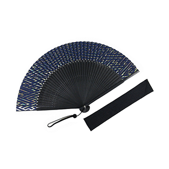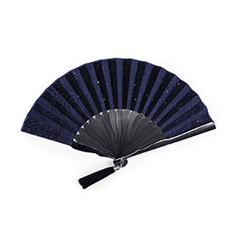 ネイビー 非常に硬く、耐久性に優れた黒檀を親骨に使用した生地の扇子です。光沢のある生地は形状記憶のジャガード織の物を採用しております。普段使いはもちろん、スーツスタイルにも合わせやすい扇子です。