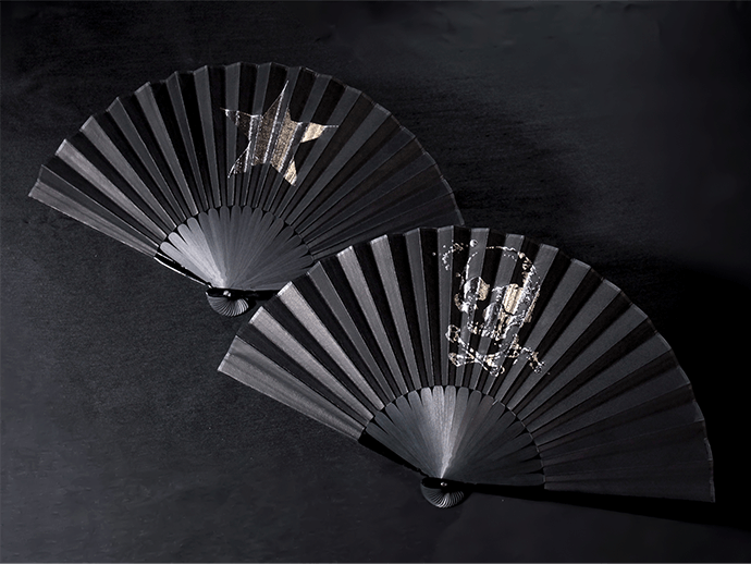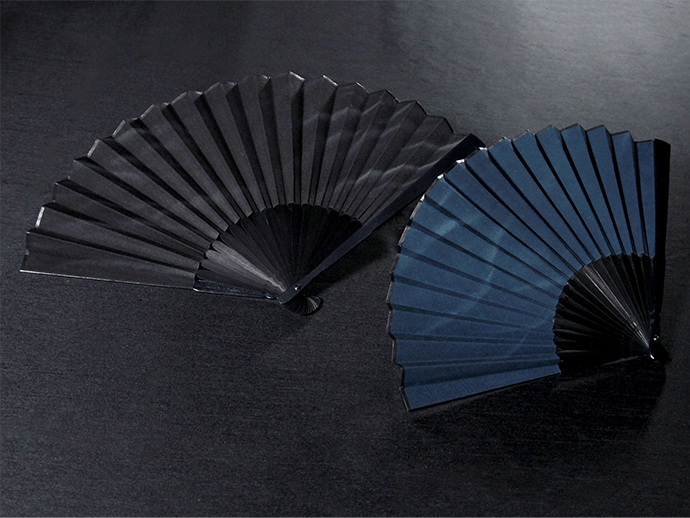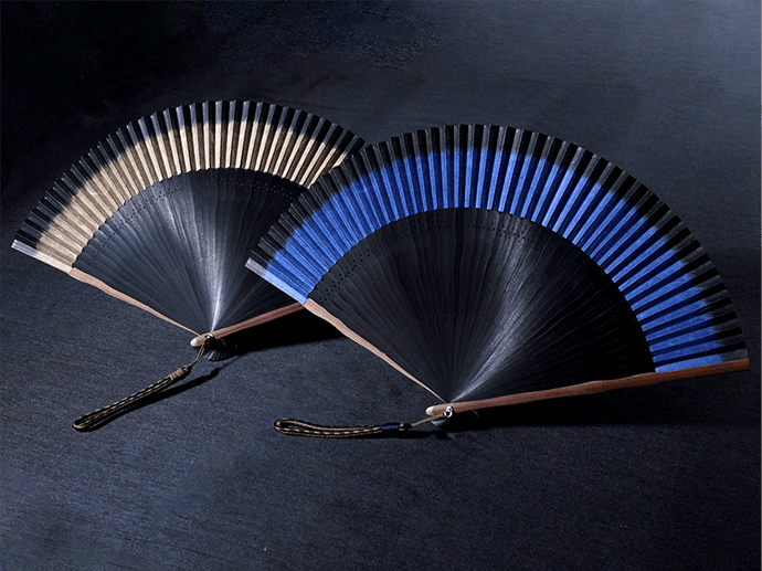 職人が2色の和紙を1枚1枚手切りで合わせて扇子に仕上げました。