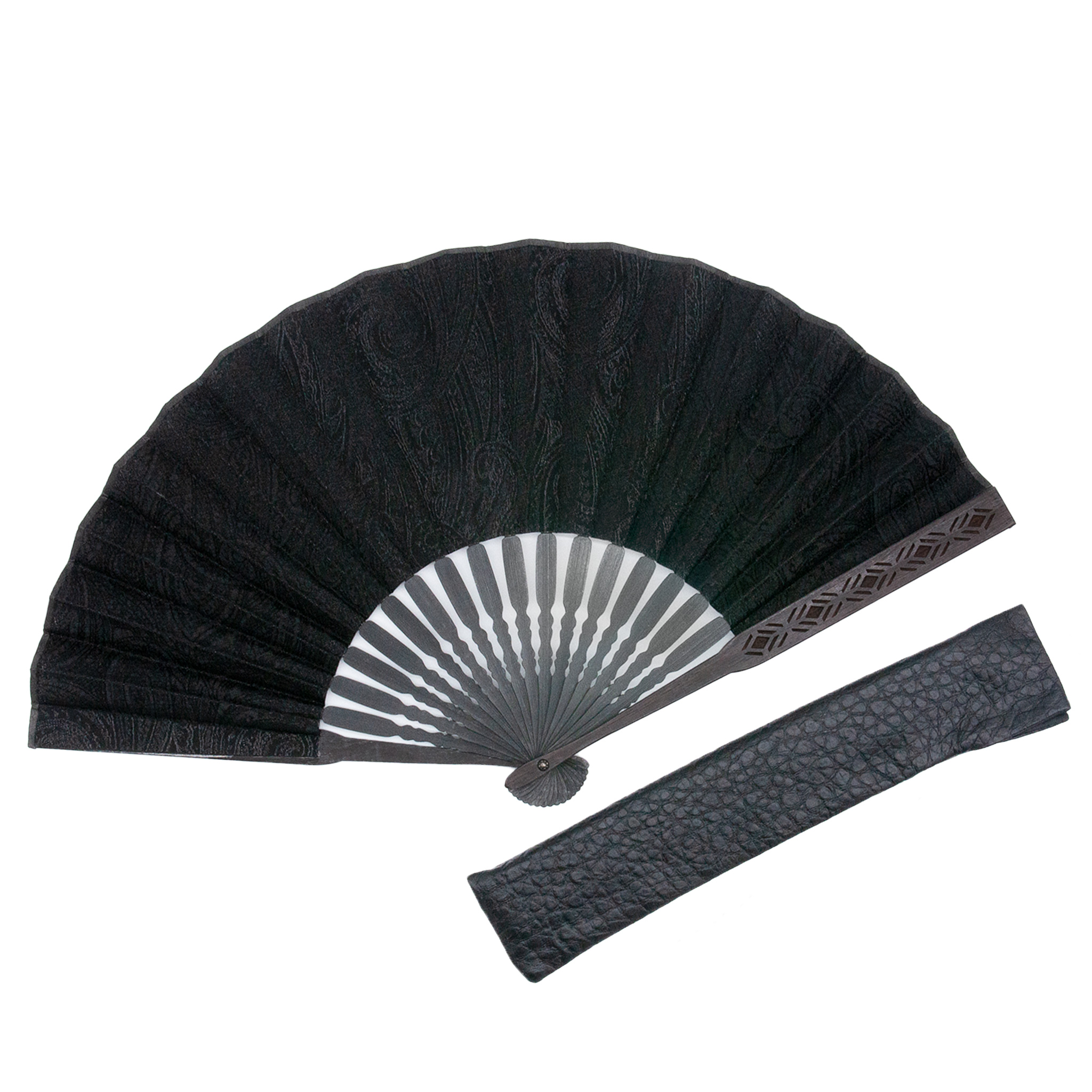 耐久性に優れた黒檀の親骨に美しい彫加工を施した上質な扇子。