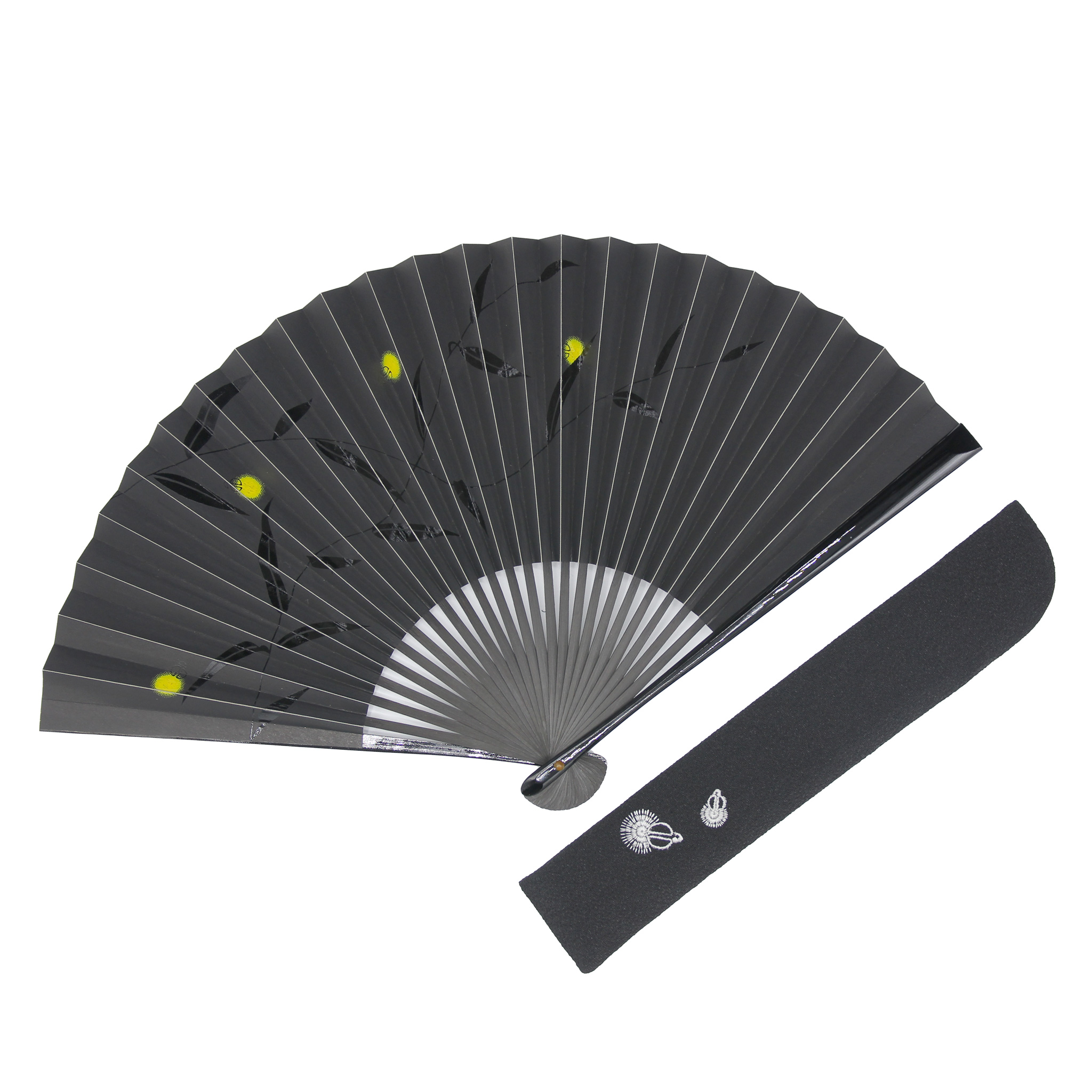 扇子セット黒を基調とした扇子に、浮かび上がるように色付けされた漆絵のモチーフが特徴の和モダンな京扇子。