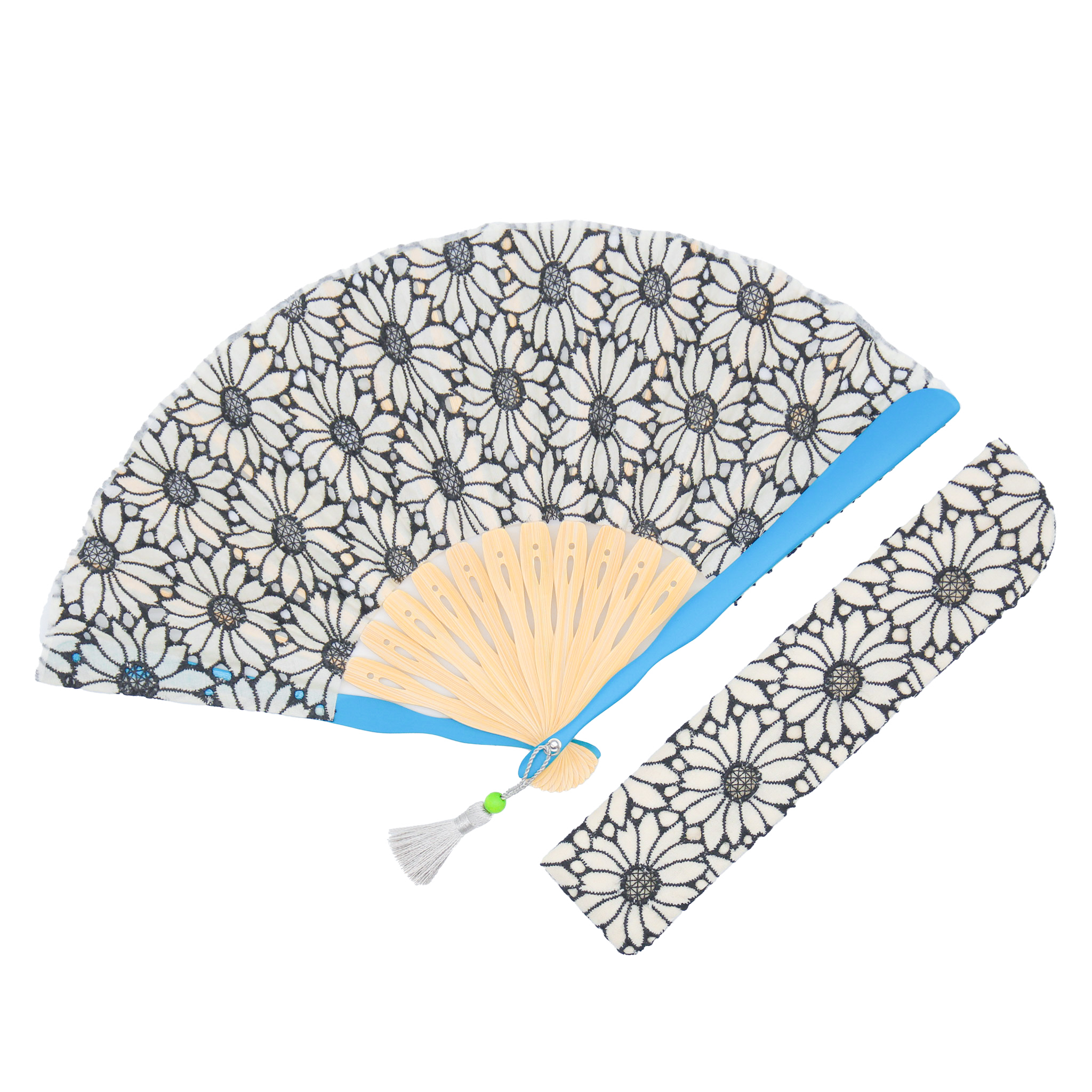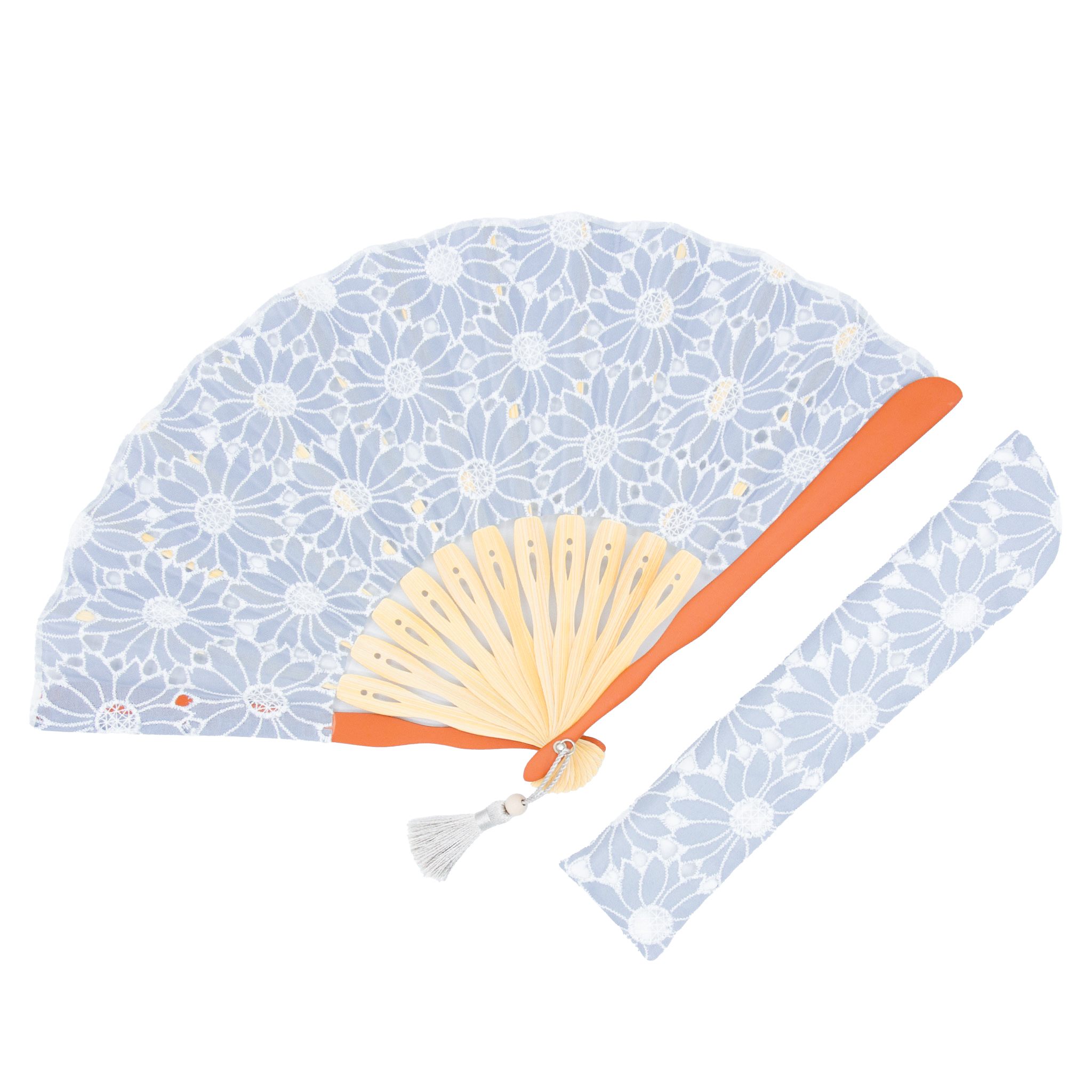 カジュアル扇子マーガレット 扇子セット 花柄のコットンレースが魅力的なモダン扇子。 親骨と木玉付きタッセルがアクセントカラーに。 マーガレット扇子セットは「ホワイト」「ブラック」「ブルー」「シアン」「マゼンダ」の全部で5種類です。 ホワイト 商品のご購入はこちらから白竹堂 公式オンラインショップ